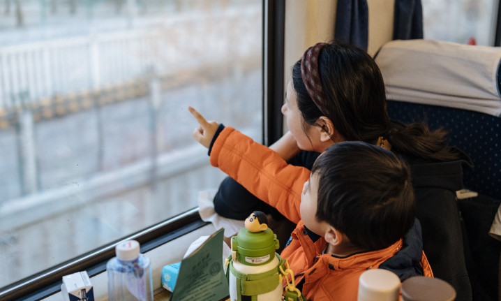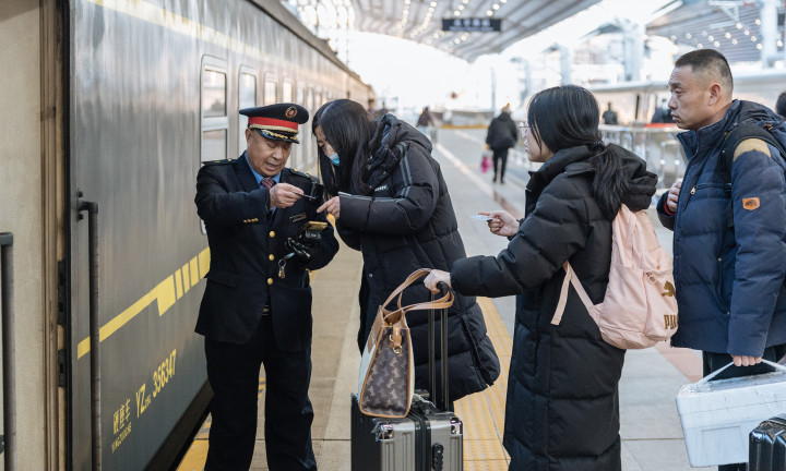 2月11日下昼,6437次列车车厢内已年味都备。列车长崔大庆捧着一叠红纸福字,用善良洪亮的嗓音给乘客奉上新春祝贺。车窗上贴着喜庆的窗花,映着窗外驰骋而过的山景;行李架上塞满了年货,有装着北京特产的手提袋,也有带给孩子的玩物。
