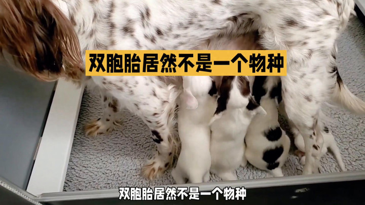 科学都难解释的奇迹,双胞胎不同物种,刷到这个我直接惊掉下巴。南非一只爱尔兰猎狼犬剖腹产时竟生下一对"神奇双胞胎",但后续发现这俩小家伙颠覆了常识。谁能想到它们看着是同窝幼犬,基因检测却证实是世界首例狗狗同卵双胞胎。