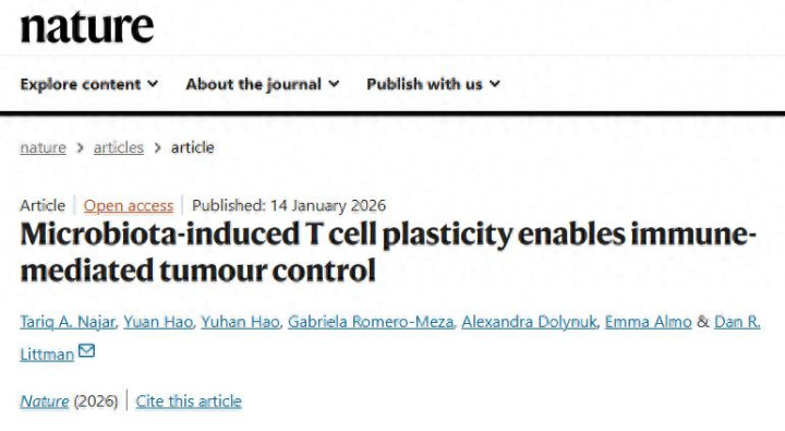 Najar, T.A., Hao, Y., Hao, Y. et al. Microbiota-induced T cell plasticity enables immune-mediated tumour control. Nature (2026). https://doi.org/10.1038/s41586-025-09913-z