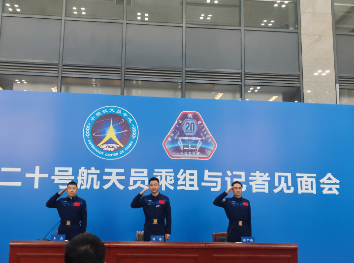 2026年1月16日,中国航天员科研训练中心在北京航天城举行神舟二十号乘组与记者见面会。这是神舟二十号航天员陈冬、陈中瑞和王杰“换乘”神舟二十一号飞船返回63天后,首次面向媒体与公众正式公开亮相。