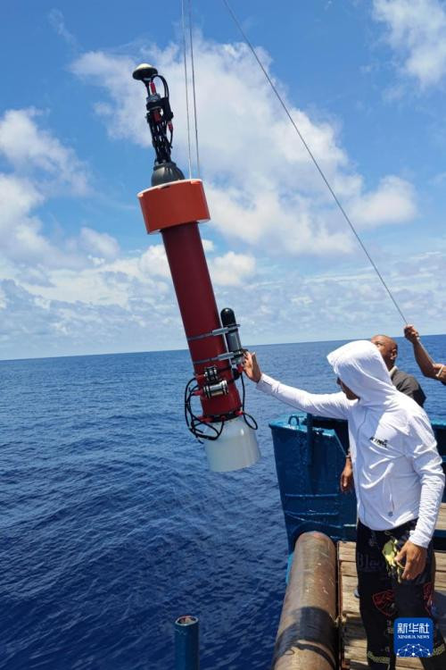 这是我国自研海洋生物地球化学原位传感器搭载Argo浮标海试布放现场(2025年5月15日摄)。