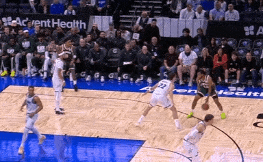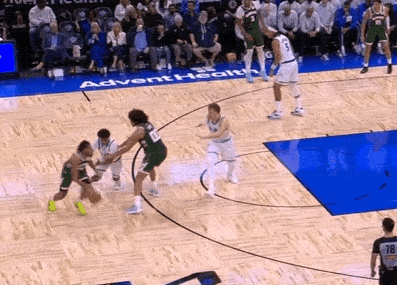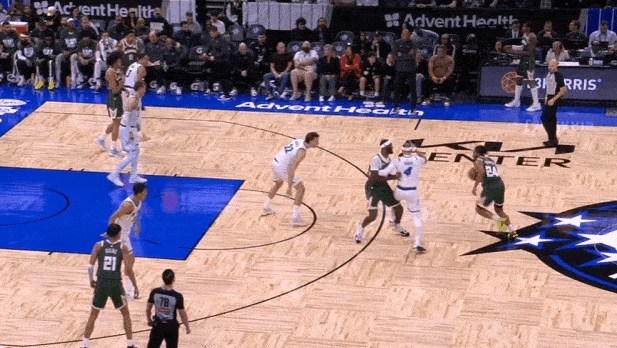 托马斯右翼合手球单打瓦格纳,以“鲨鱼步”算作单打起手式调节戒备东说念主重点,速即连结“双后撤步”拉回三分线外——很典型的哈登时刻体系,点飞小瓦后立即传给强侧底角的加哈,速即开展Give and Go互助,无球空切无所畏惧接球后空篮稳稳上进。