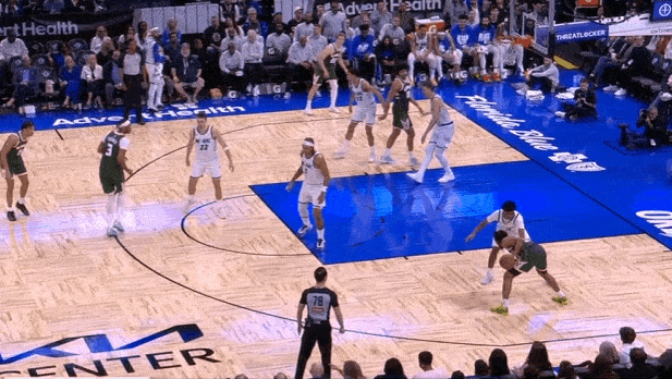 托马斯弧顶发动挡拆,行进间等平延误的大瓦归位后立即胯下变向起先粉碎向中路行进,粉碎至罚球线使用内侧脚刺探急停后连结撤步后仰中投,稳稳射中。