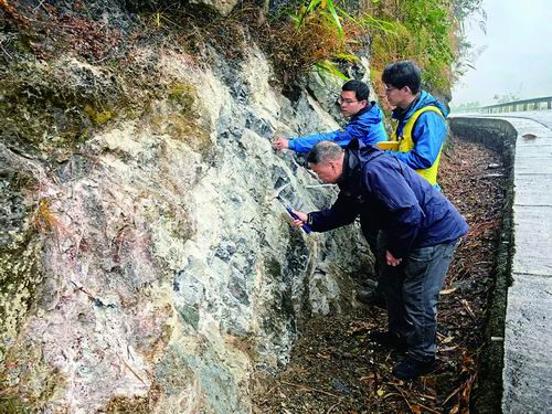 和着半山腰下远远传来的鞭炮声,更高处的路说念旁,几个年青的身影一下下挥动着地质锤,在山体的岩石剖面上敲击着。而在距离他们一两百米的所在,一处“不起眼”的剖面,可能很快就会成为中国的第12颗“金钉子”。