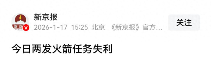 “今日两发火箭任务失利”——新京报2026年1月17号