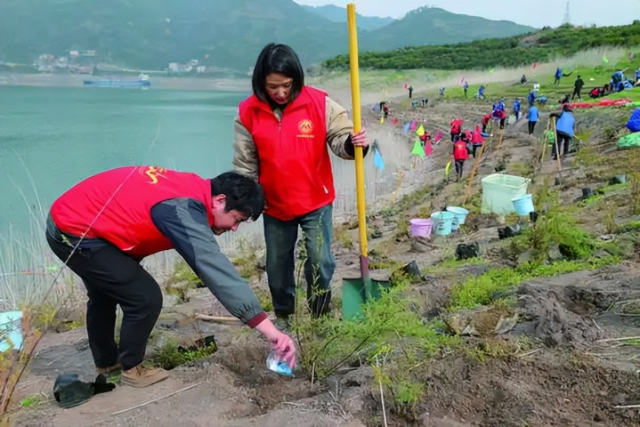 2022年到2023年,团队将首批回归的1000多株疏花水柏枝,移栽到长江岸边,成活率高达百分之八十以上。
