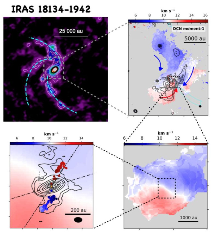 2025年9月,中国科学院上海天文台麦晓峰博士的研究团队揭示了大质量恒星形成区IRAS 18134-1942中气体从大尺度流向小尺度的完整过程。