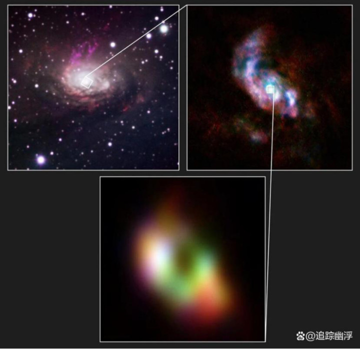 2025年10月,莱顿大学的沃特·戈萨尔特 (Wout Goesaert) 和他的国际团队利用智利强大的 ALMA 天文台,清楚地了解了圆规座星系Circinus 两个巨大的螺旋气体臂如何为星系中心的超大质量黑洞提供食物。这些旋臂以每小时 15万 公里的速度将材料向内输送,在靠近黑洞时碰撞、加热和压缩。但最终,只有大约 12% 的物质能够进入事件视界,其余88%物质被向外喷出,在银河系的郊区回落,为后代恒星和行星播种。