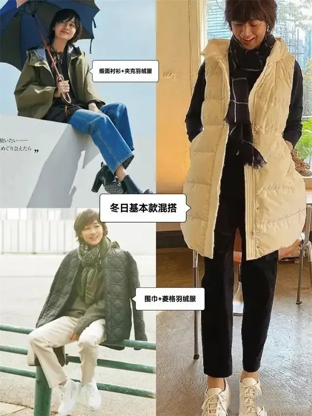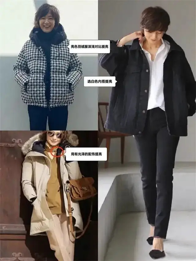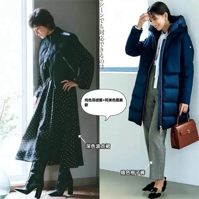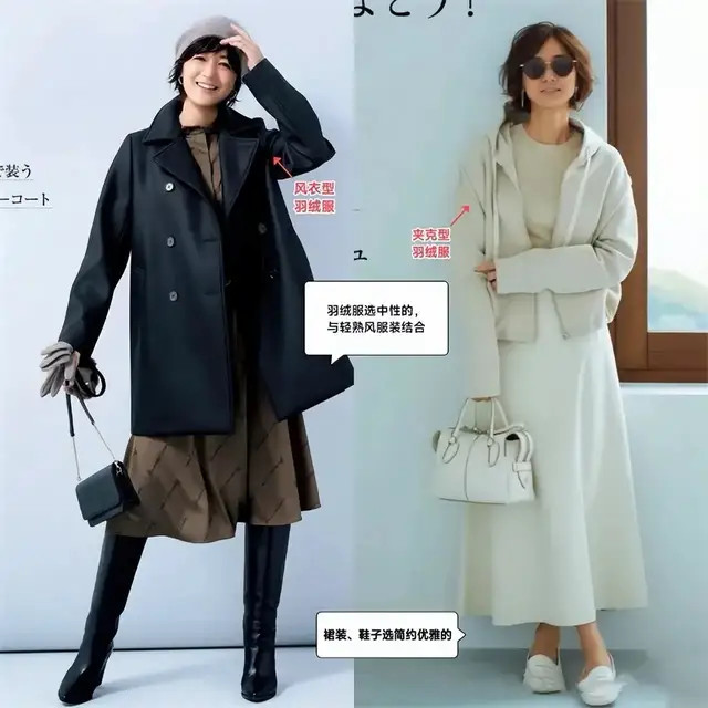 还可以选择夹克型的羽绒服。这种羽绒服偏中性,再与轻熟风的服装结合,不光能遮肉显瘦而且高贵典雅。这大衣服还是属于顺色搭配降低了配色的出错率。