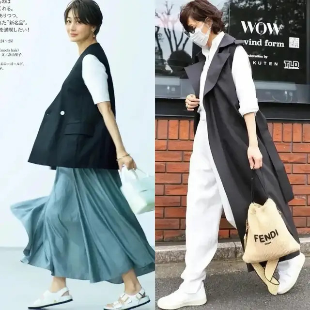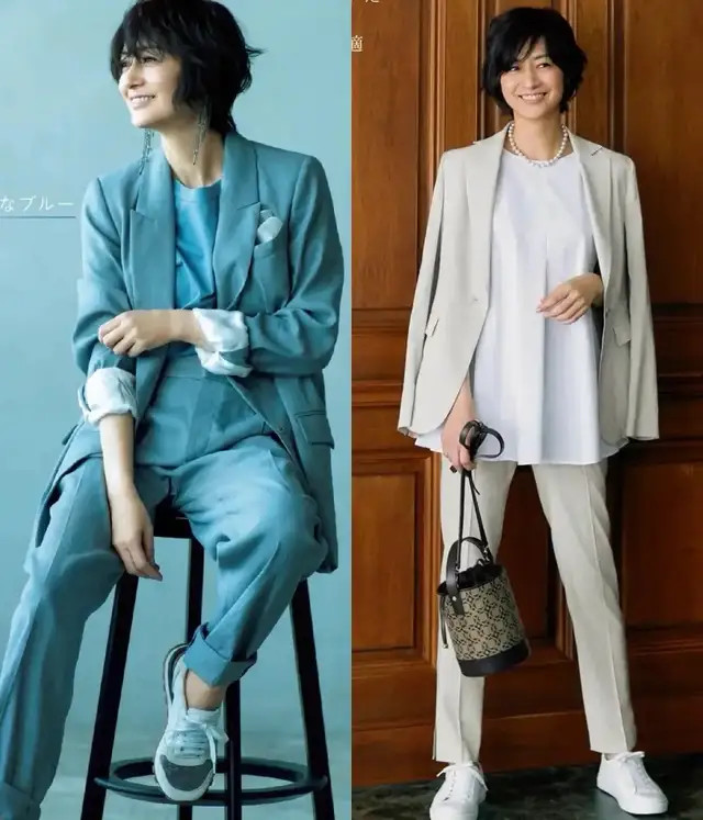 若是像富冈佳子这般身着一袭白色西装,脚下踩着一双干净的小白鞋,也是极好的。