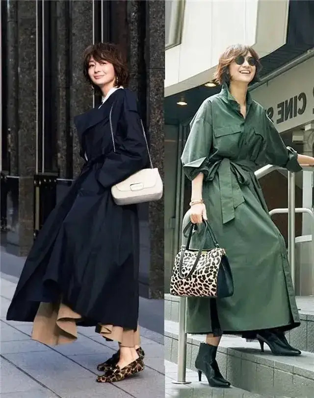 等年龄到了奔五奔六的阶段,穿衣打扮不要刻意去装嫩,选择短款的裙子或者是露腰的穿搭。我们应该像“富冈佳子”一样,用一套卡其色的西服裙装,或者是一件风衣外套,搭配上一款蓬松感的短发造型就显得高级又减龄。