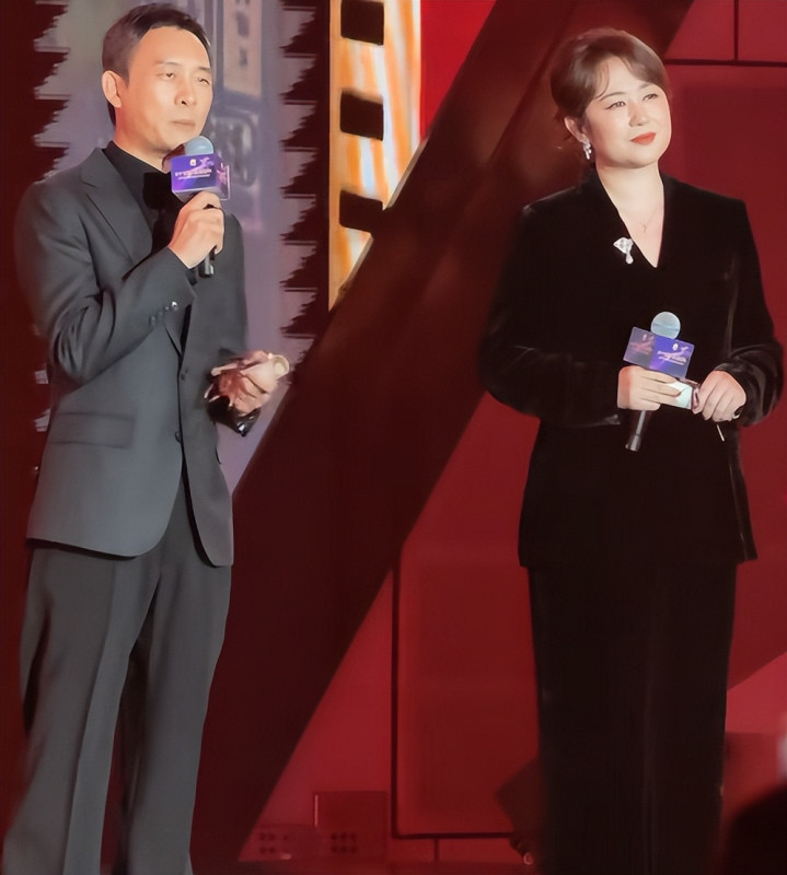 哪怕穿着黑色西装,也没能把马丽衬得多么清瘦,尤其是在张译的对比下,更显得白白胖胖,看着格外“富态”。
