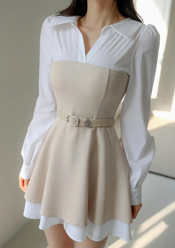 开云官方体育app 驼棕针织裹着金扣的柔, 浅褐短裙衬出腰线的韵