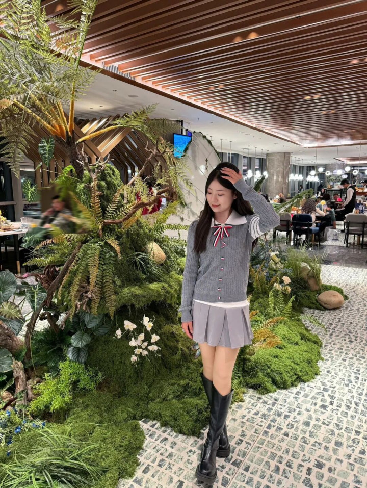 开云官方体育app 158小个子新年甜妹风! 灰学院风套装+长靴巨显腿长