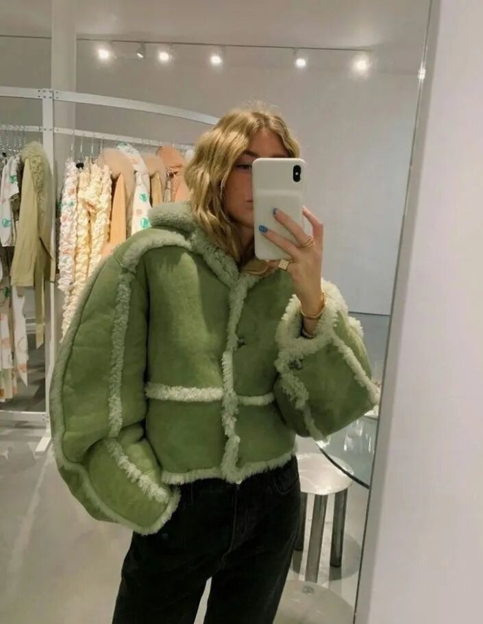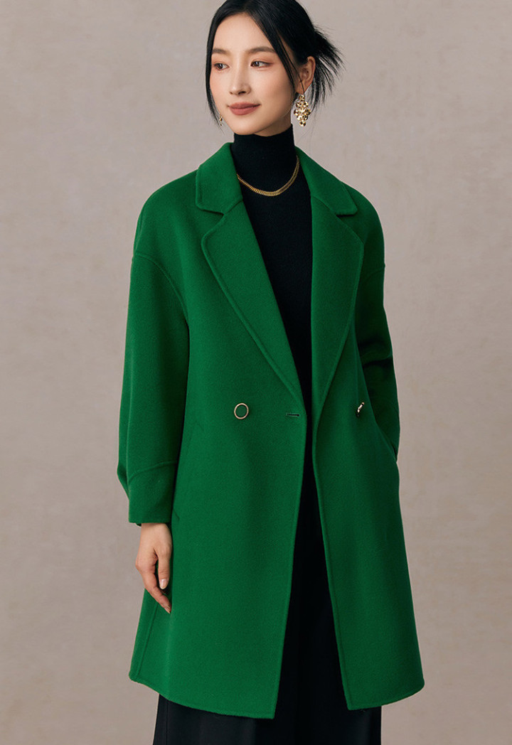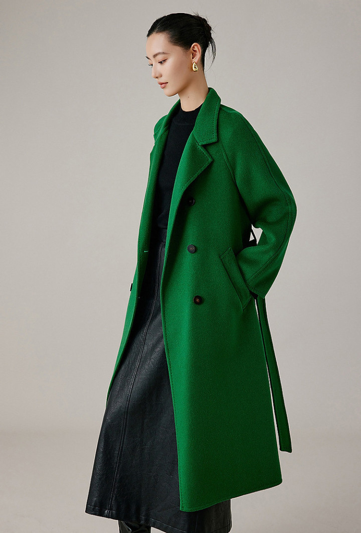 亮绿更适合白皮 / 黄一白,想显白可以内搭黑色高领,弱化绿色对肤色的影响;腰带是关键,避免宽松大衣显臃肿,一秒穿出腰线。