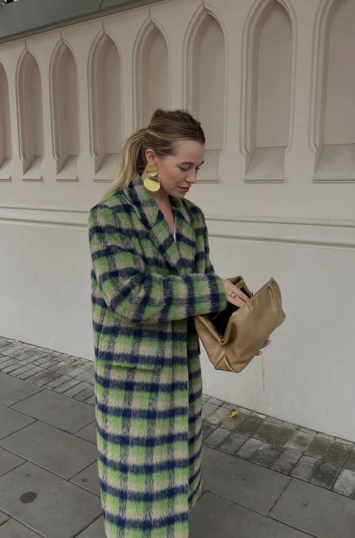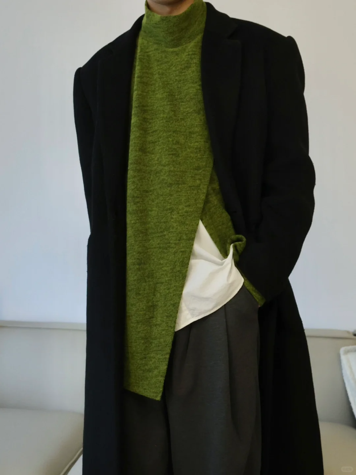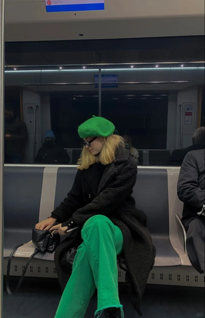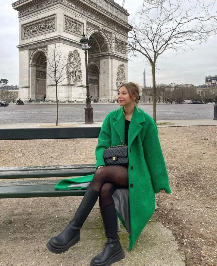 冬天的穿搭总逃不开「沉闷」二字,而绿色大衣的出现,直接把「生机感」焊在了身上。内搭直接用黑色打底衫 / 毛衣「隐身」,让高饱和绿色大衣成为绝对主角。下装可以选同色系绿色长裤,用一双荧光绿高跟鞋呼应细节;或者搭配黑色长裤\长靴,极简配色反而更显气场。