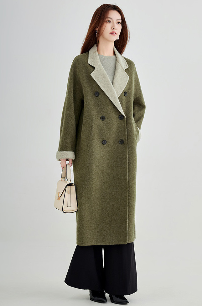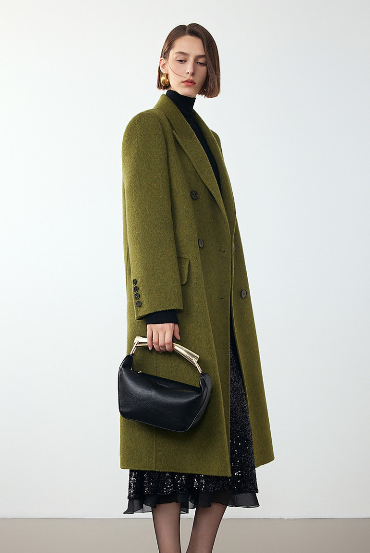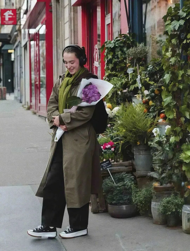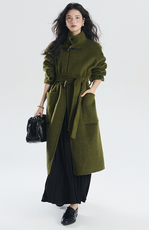 自带肌理感的橄榄绿大衣比黑色温柔,比驼色特别,低饱和色调自带滤镜,让你在寒风里也能穿出松弛高级感。大衣敞开穿露出里层细节,增加呼吸感,避免整体厚重。