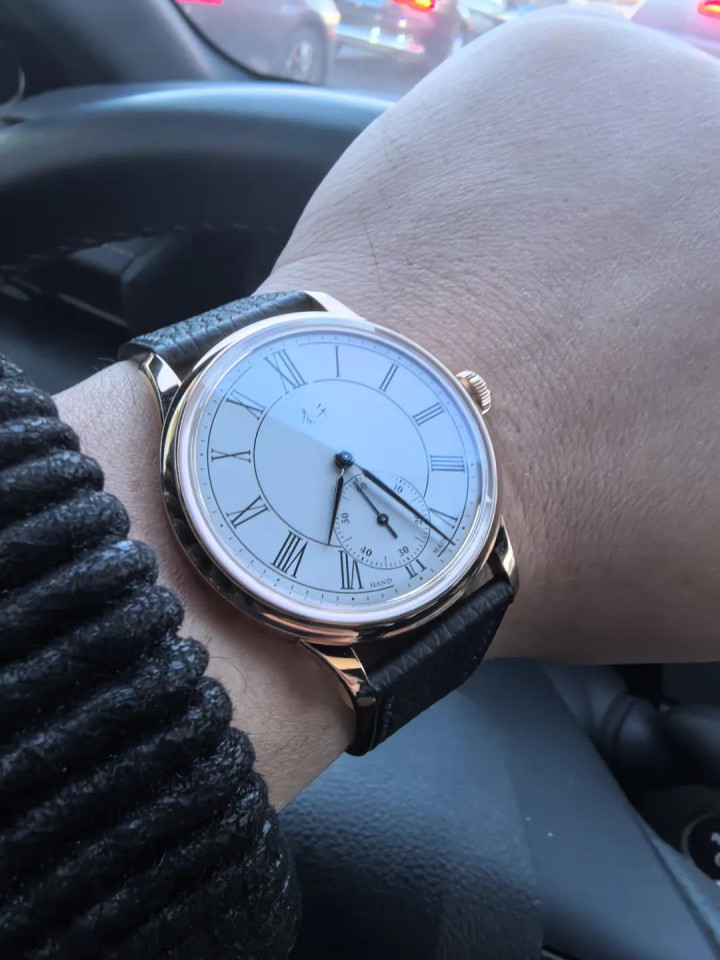 错过了秦干老师的一代田园,2021年9月订到了二代田园,这一等就是四年,即便中间很多人劝我退订,我也没有动摇,终于在2025年年末交付给我了,戴上的那一刻,觉得真的等得很值,秦老师是个追求极致完美的人,机芯的打磨就不用说了,手表其它任何零部件都是精雕细琢,难怪用时如此之长,据说下一批田园已经排了几百人了,还是在价格上调到32.8的情况下。