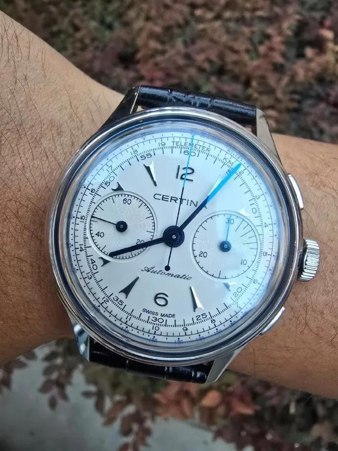去年是跟复刻杠上了,第一次见到这块雪铁纳UFO复刻计时还是在帆哥的微博,当时的认知还停留在买表看机芯看打磨的阶段,觉得机芯用了7753,没什么可玩性,随着关注表态网多年,对我最大影响就是看待腕表要从整体出发,这句话看似简单可理解起来需要时间,当我醒悟之后觉得它真的非常好看,照片照不出它古典的韵味,但戴在手上我会时不时抬手欣赏它的美而不是看时间。而且它并不厚,42mm表径虽然被放大了但并不影响它的协调性,反而能更直观地欣赏它的美。