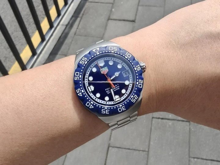 今年泰格豪雅重新作为F1官方计时,之前从卡莱拉的变速计时就开始关注泰格豪雅,加上22年入坑F1,再加上也是红牛车队的赞助之一,也算是三厨狂喜,让我义无反顾的选择他。蓝盘红秒针可以算是呼应了红牛的配色,虽然今年潘子差一点拿下wdc,但是赛季末的追分之战也足够热血。F1的小表径也很符合小碗子,作为体现个性和个人喜好的心情表,光动能机芯反倒是一个省心的选择。