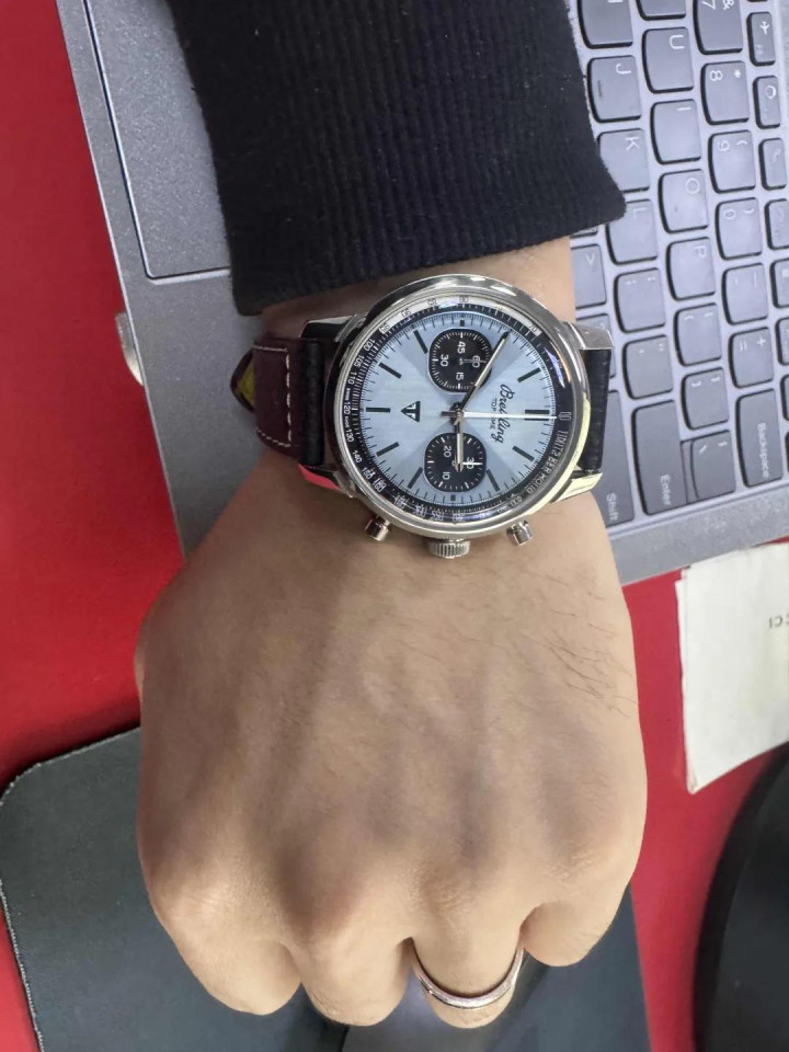 相对冷门的一块表,第一眼就看中了,犹豫赶时间当时没有买,后来过了半个月和老婆商量了一下还是决定去购置回来。人生中的第三块百年灵,很感谢老婆支持我的小爱好!