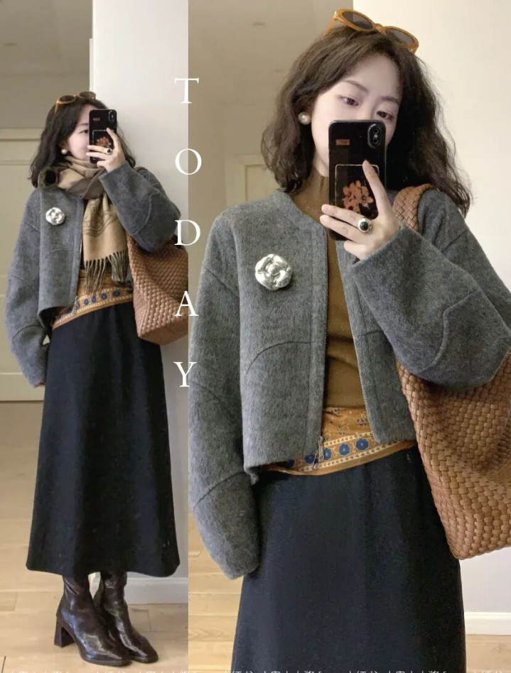 秋冬穿搭 #高级感配色 #灰色棕色穿搭 #时髦配色 #韩系穿搭