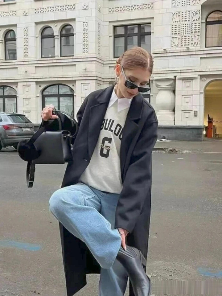 方头短靴配大衣/牛仔裤,秒显腿直气场拉满。