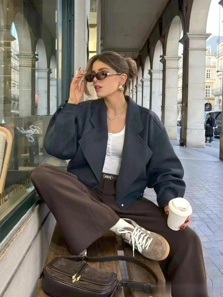 德训鞋配卫衣卫裤超休闲,搭西装也能轻通勤。