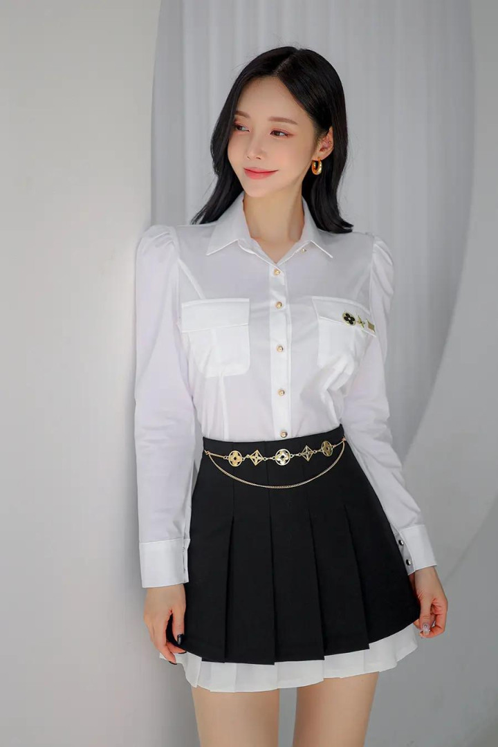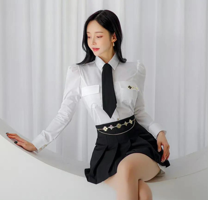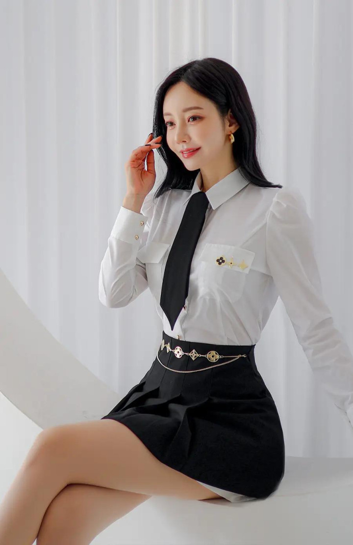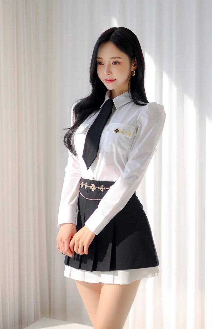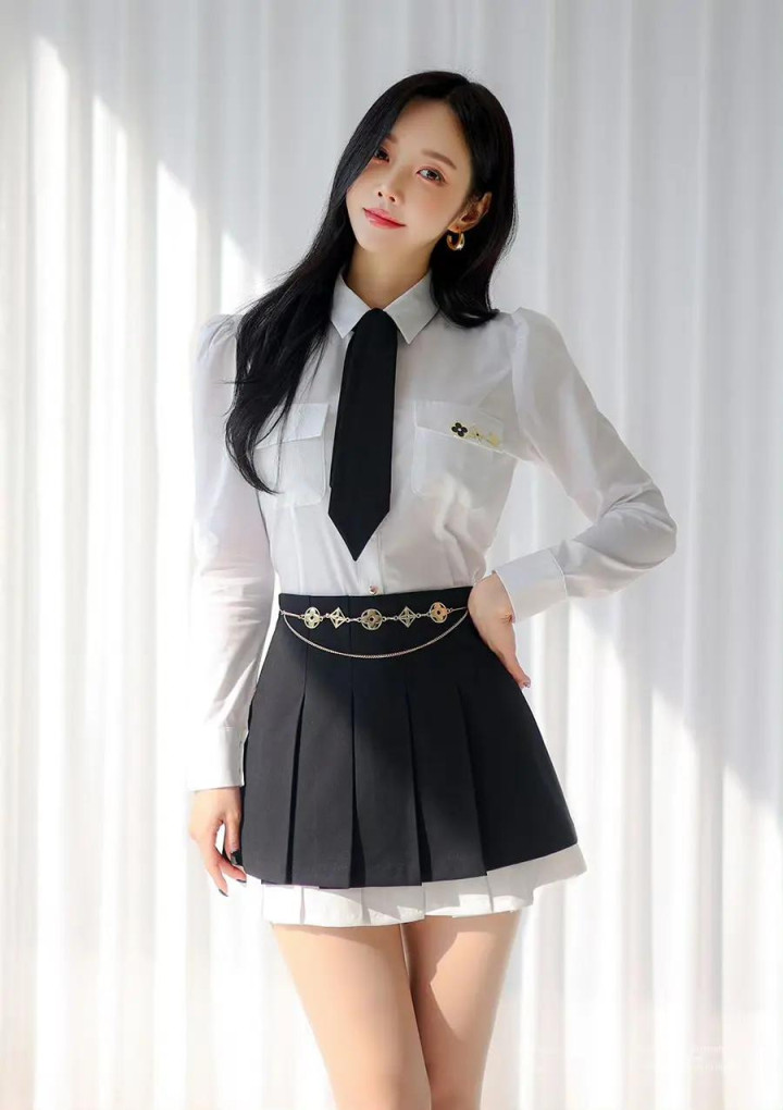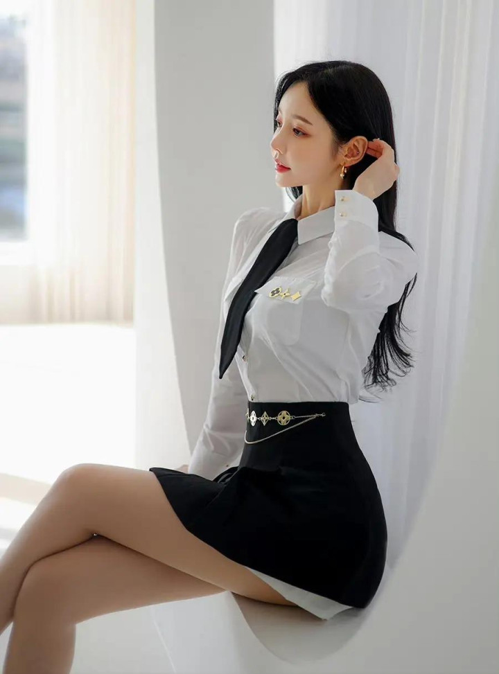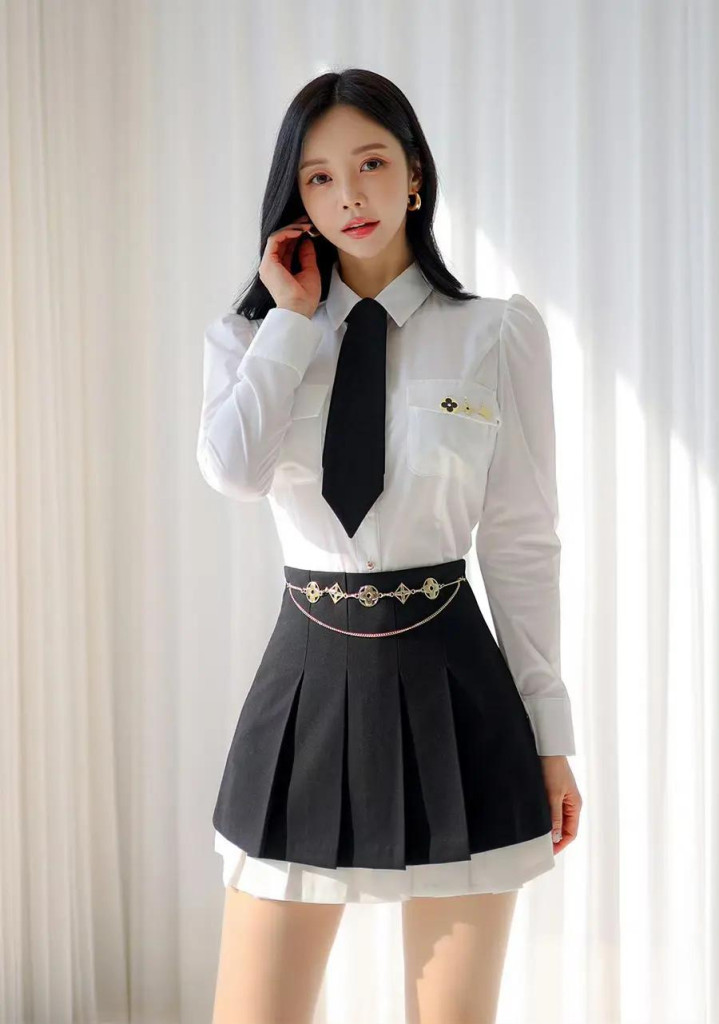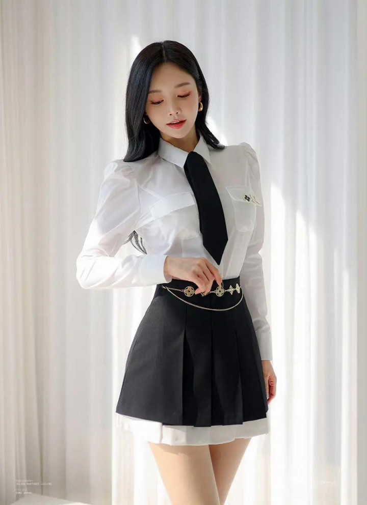 开云app 白衬衫的纯粹, 遇上黑短裙的利落, 经典撞色勾勒出简约时尚的轮廓