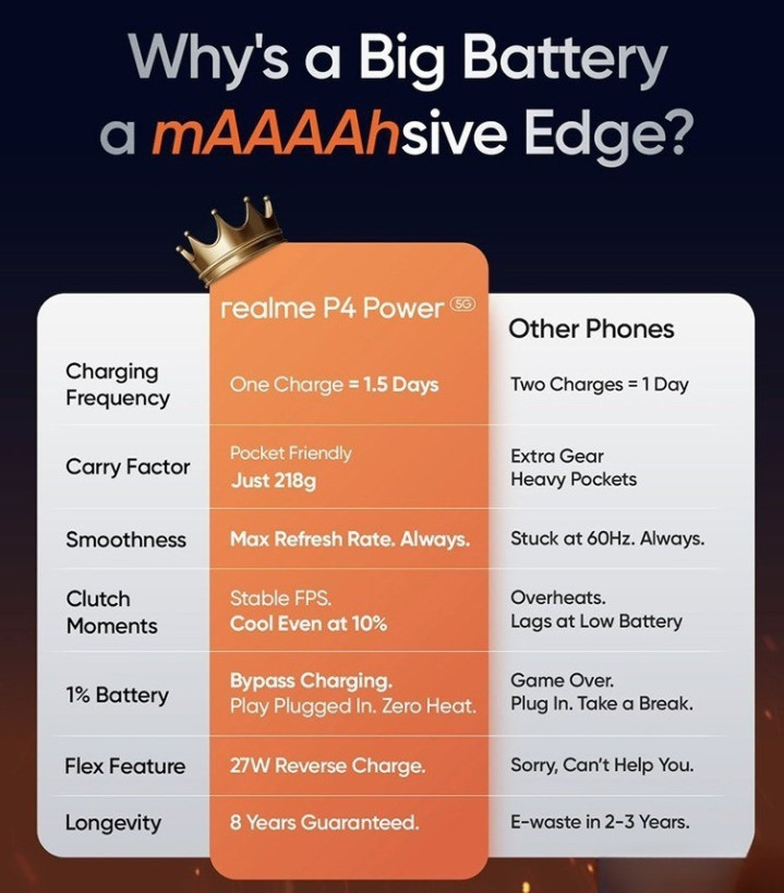 从全球市场看,印度、东南亚等新兴市场对大电池手机的需求旺盛,这些地区的基础设施相对薄弱,充电不便的场景更多。真我P4 Power的全球发布,也是在巩固其在新兴市场的品牌地位,与其他品牌形成差异化竞争。